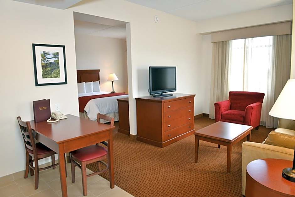 This accessible suite features a seating area, a refrigerator and a dining area. This room is ADA compliant.